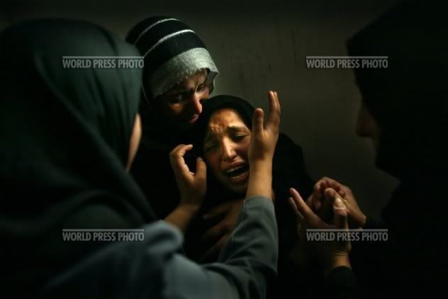 I think that this picture is very well taken in the sense that it captures fully the emotion on the face of the woman in the centre who appears to be grieving. The focus is enhanced as the surrounding women are not in clear focus. They are slightly blurred in comparison with the woman in the centre. More light is also shed on the central portion of the photograph, and there is a lot of black space in the surrounding parts of the picture. I think that the photographer, Jerry, got exactly what he wanted to capture. A gloomy representation of the suffering that these women are going through together. It feels cold and hardened, and a lack of warmth and humanity.